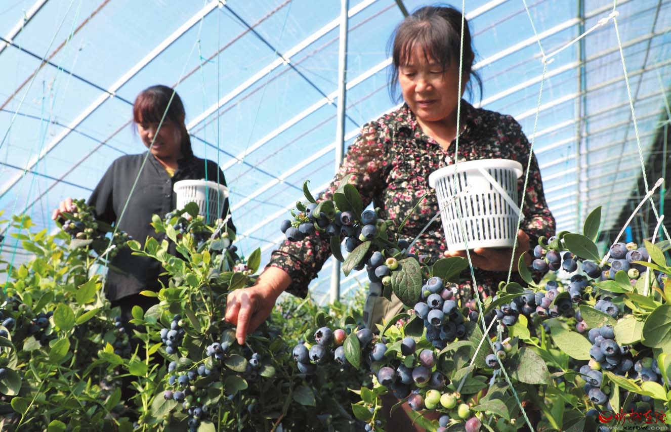 近日,原平市北三泉村溫室大棚的藍莓進入采摘期,工人們忙著采摘色鮮味美的藍莓,準(zhǔn)備供應(yīng)北京、上海等一線城市市場。 (
