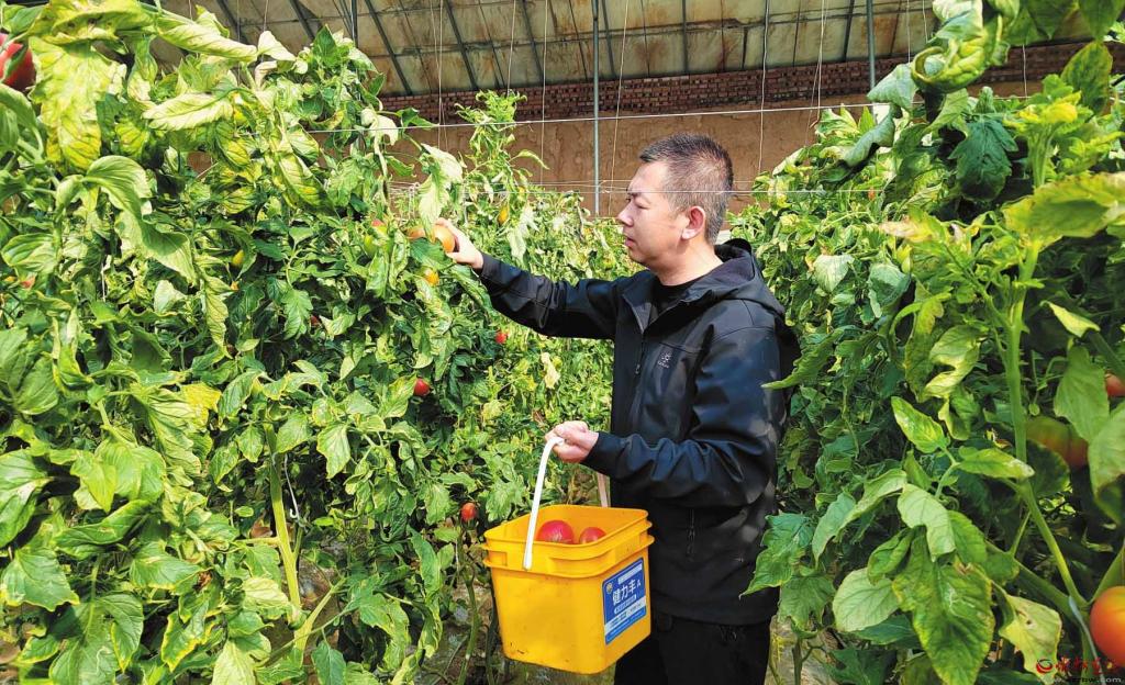 在定襄縣前營村的溫室大棚里,西紅柿長勢喜人,每天都有不少市民前來體驗采摘樂趣。據(jù)大棚負責(zé)人介紹,西紅柿采收結(jié)束后將接茬種植大棚西瓜。 (張玉虎攝)