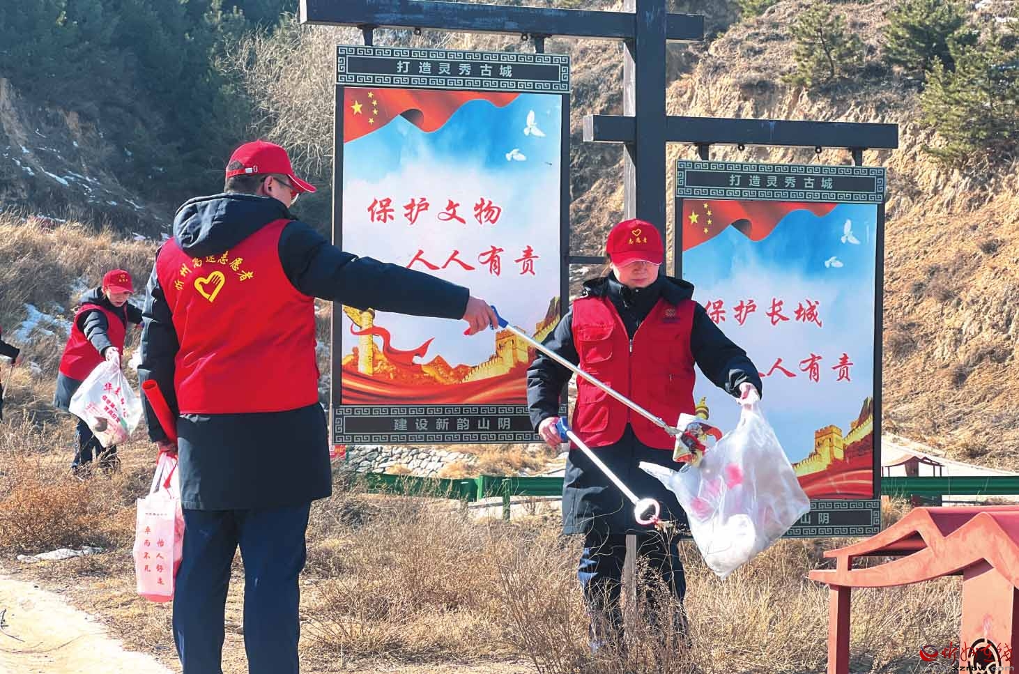 近日,山西交控忻州公司新廣武收費站的志愿者身著醒目的紅馬甲,來到廣武明長城開展志愿服務(wù)活動。圖為志愿者手持夾子等工具,認(rèn)真撿拾垃圾。 (曹慧敏 劉曉榮 攝影報道)