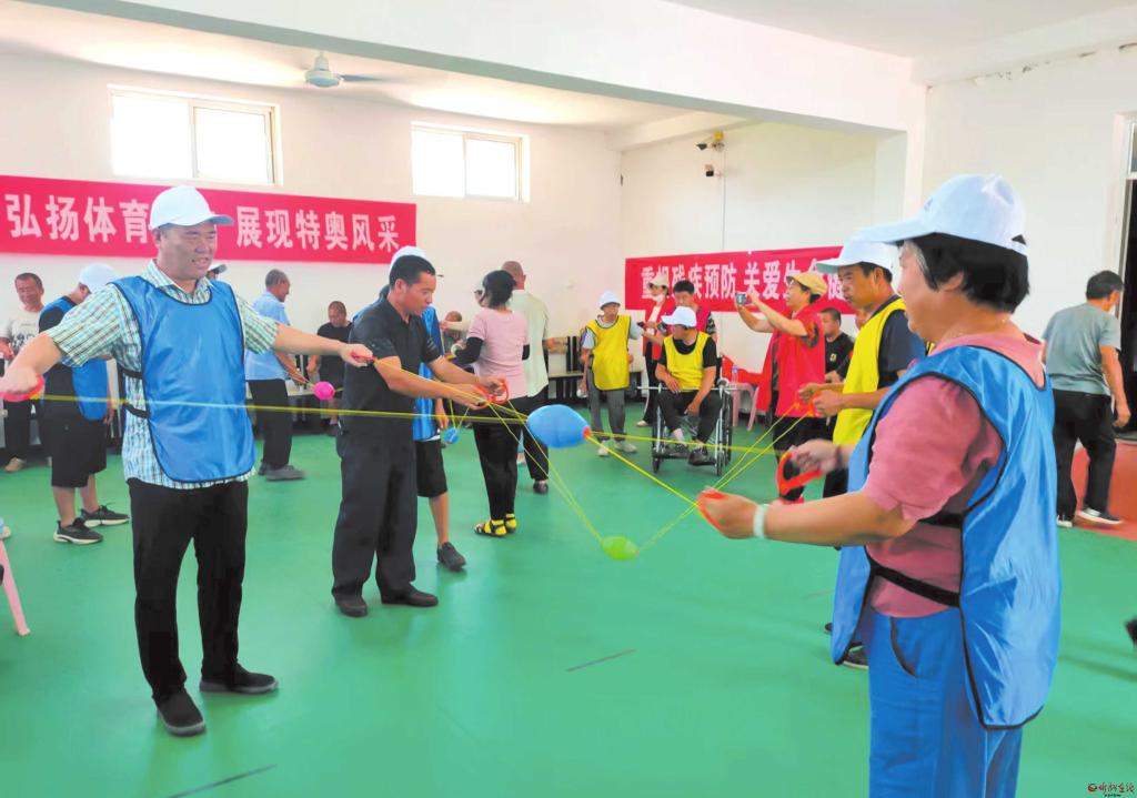近日,定襄縣殘疾人聯(lián)合會(huì)在定襄縣殘疾人托養(yǎng)中心開展“弘揚(yáng)體育精神展現(xiàn)特奧風(fēng)采”第19次全國特奧日活動(dòng)。拔河、扭秧歌、套圈、拍籃球、雙人拉力球、踢毽子、趣味羊角球、投擲沙包、健身運(yùn)動(dòng)等健康向上、形式多樣、豐富多彩的體育項(xiàng)目,從不同方面鍛煉他們的動(dòng)手、動(dòng)腦能力以及手眼協(xié)調(diào)能力。本次活動(dòng),不僅為他們提供了展示自我、增強(qiáng)信心的平臺(tái),更讓他們感受到了社會(huì)的溫暖與關(guān)愛。(張玉虎 張未琴攝)
