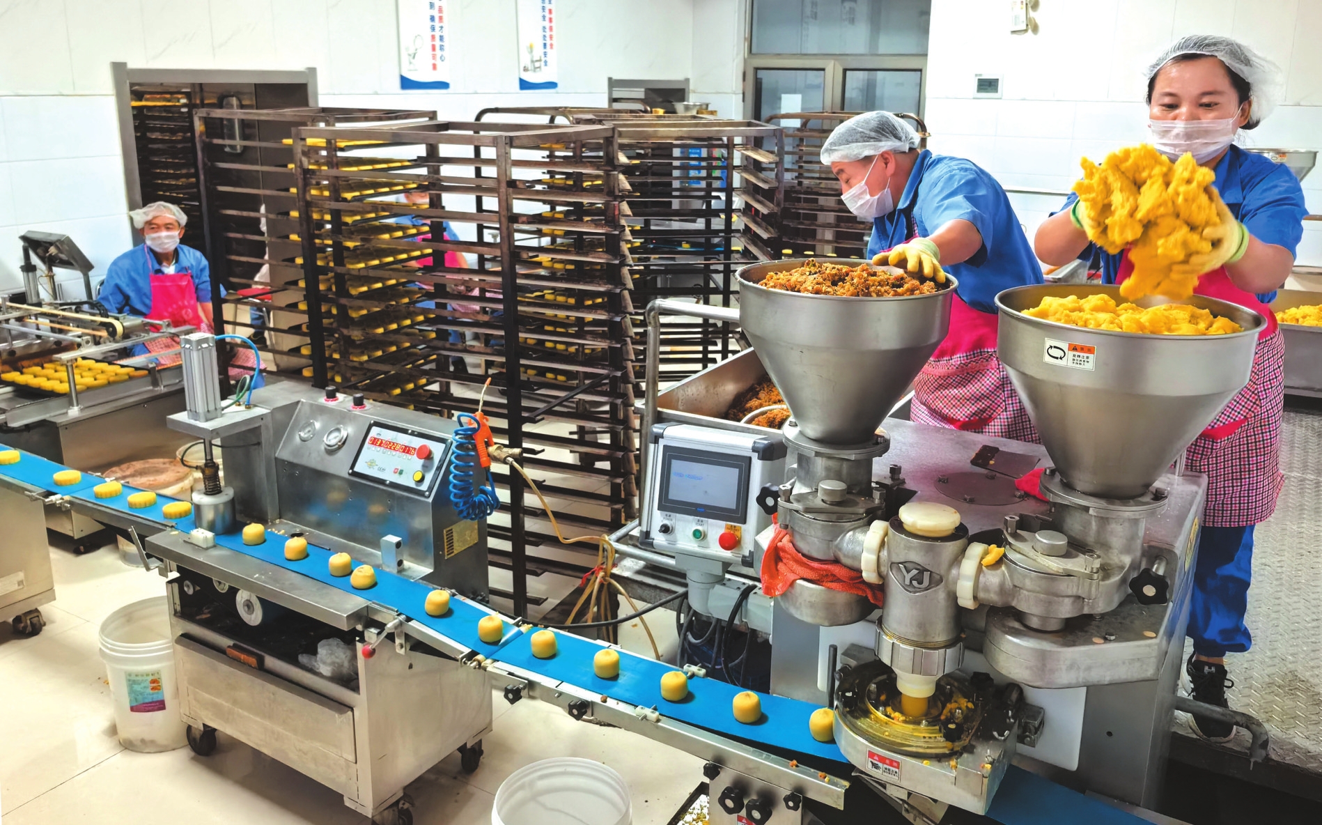 中秋節(jié)臨近,被譽(yù)為“中國北方月餅之鄉(xiāng)”的神池縣迎來月餅產(chǎn)銷旺季。近日,當(dāng)?shù)卦嘛炆a(chǎn)企業(yè)開足馬力,加緊生產(chǎn),以保障節(jié)日市場供應(yīng)。(鄭志東攝)