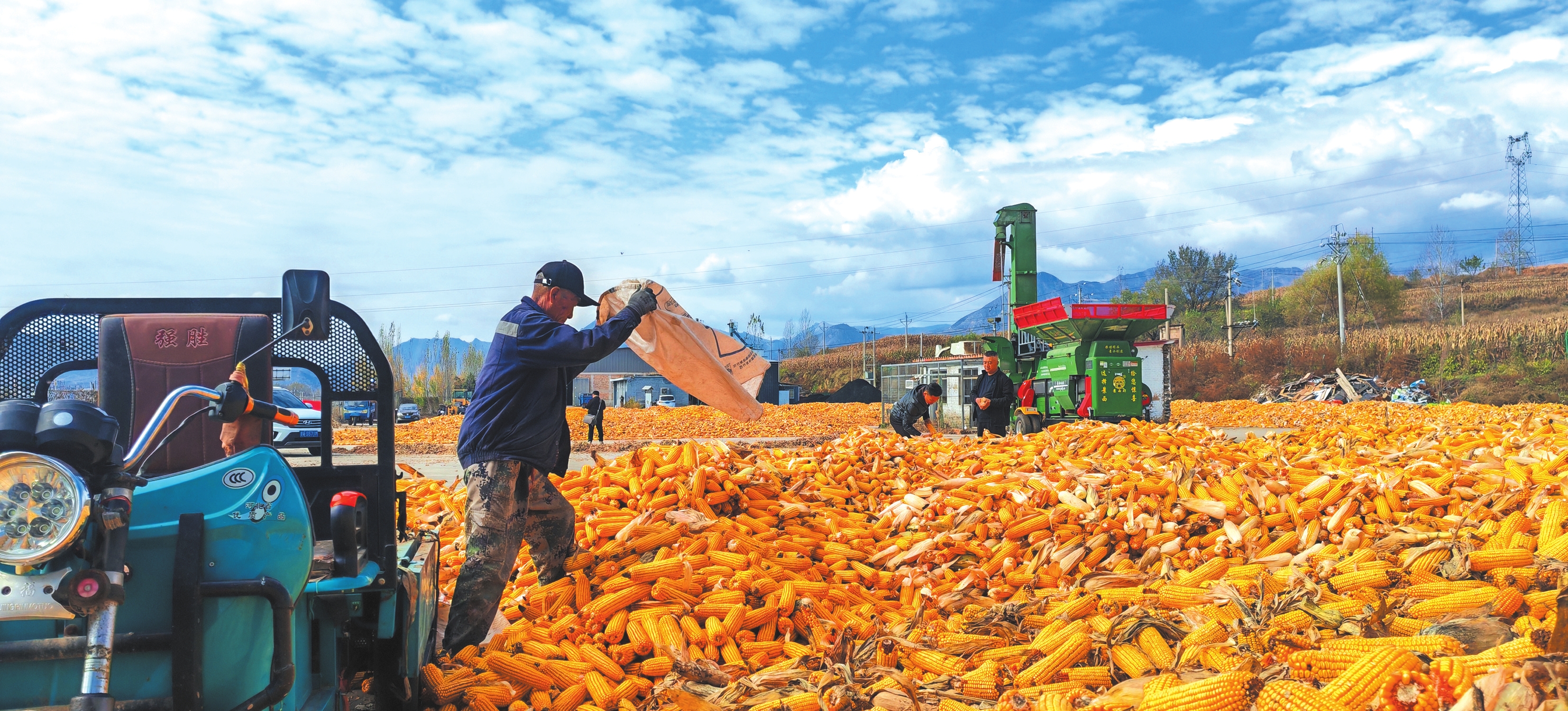 五臺(tái)縣豆村山西四聚農(nóng)業(yè)開發(fā)有限公司玉米烘干現(xiàn)場(chǎng)。盧俊華攝