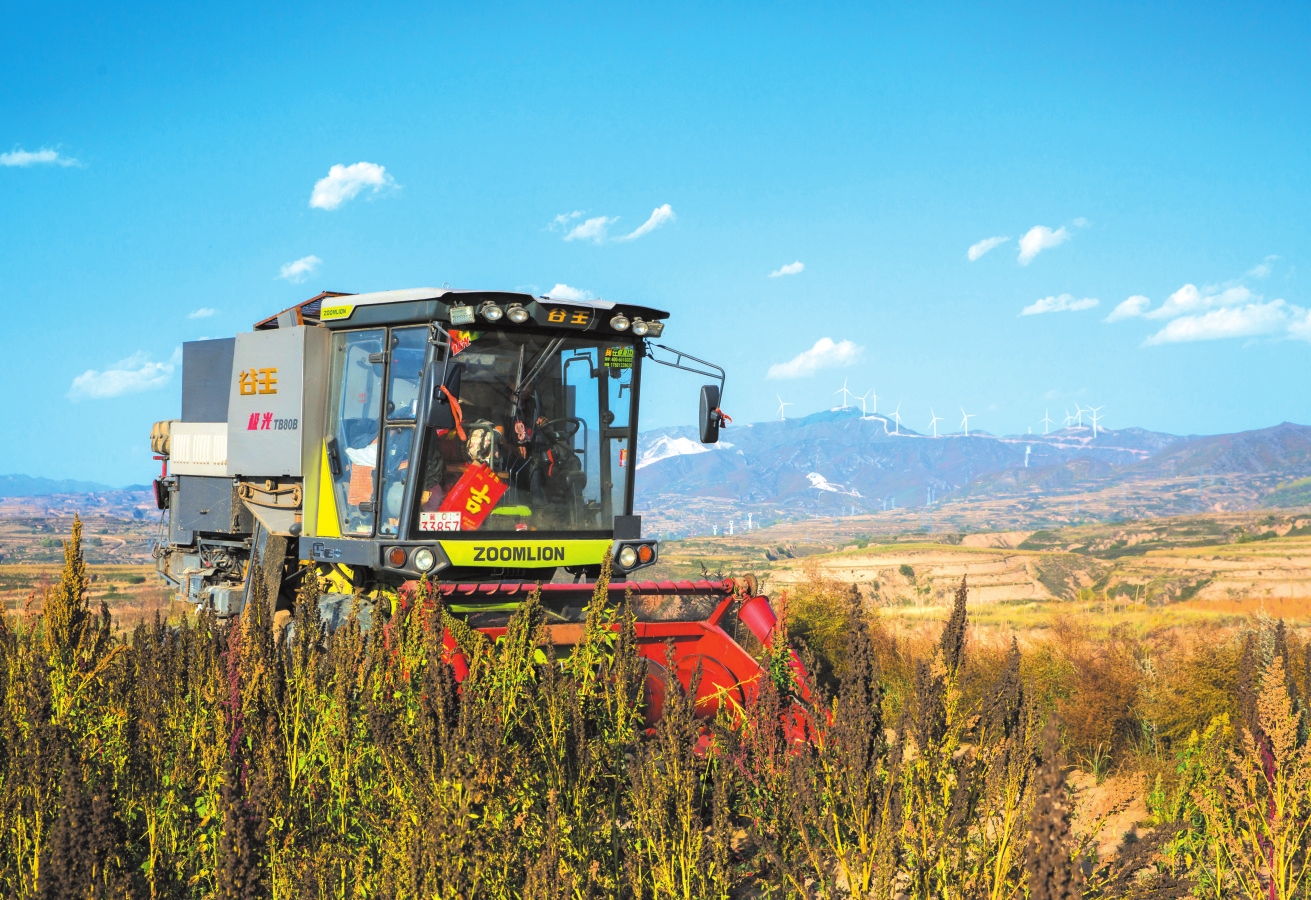 靜樂縣雙路鎮(zhèn)程子坪村的藜麥秋收?qǐng)鼍?。?芳攝