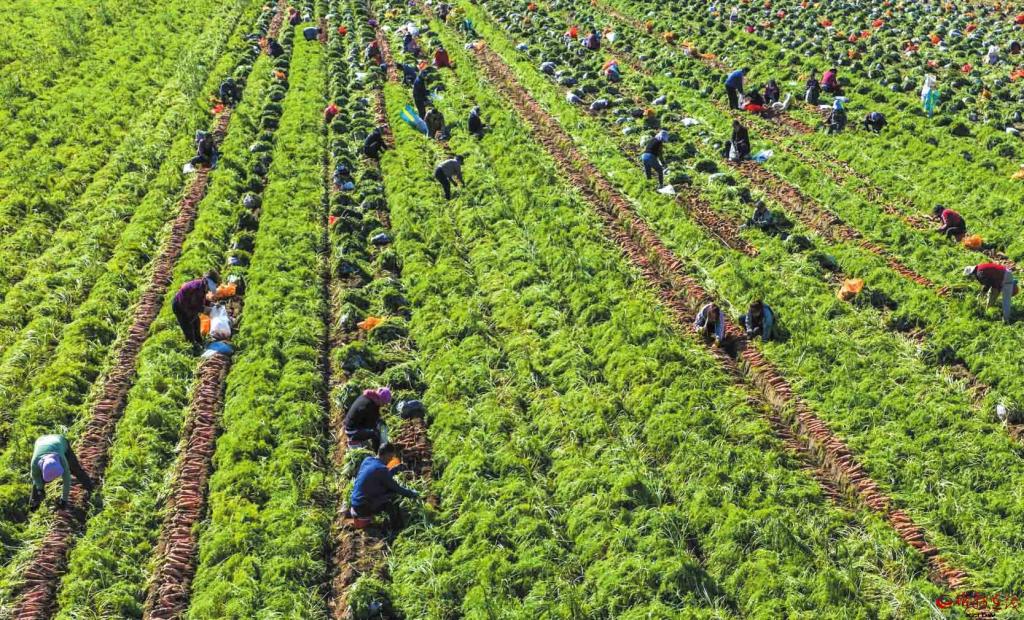 晚秋時(shí)節(jié),代縣新高鄉(xiāng)韓街村胡蘿卜種植基地迎來了豐收季。品質(zhì)優(yōu)良的胡蘿卜經(jīng)過簡單處理,將被運(yùn)往全國各地市場。(王晉東攝)