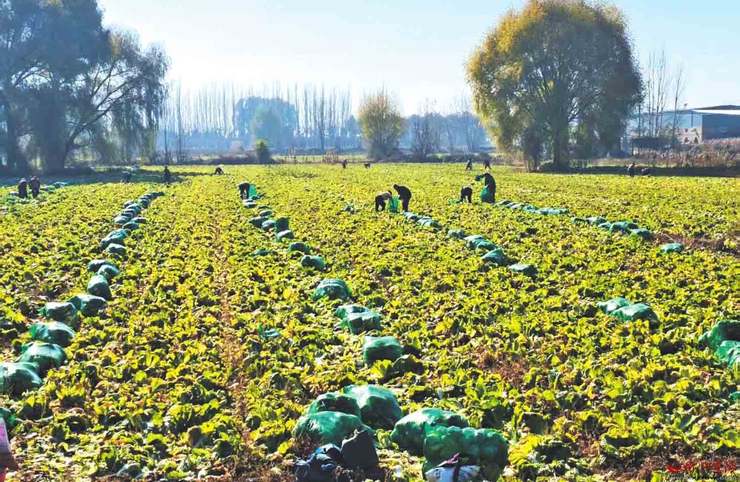 初冬的田野上,飽滿結實的白菜如同翡翠般鑲嵌在黃土地上。菜農們穿梭于田壟之間,臉上寫滿了對今年收成的滿意。作為當?shù)氐奶厣r產品,這些品質優(yōu)良的白菜將被運往市場,成為農戶增收的重要來源。(記者劉芝彤攝)