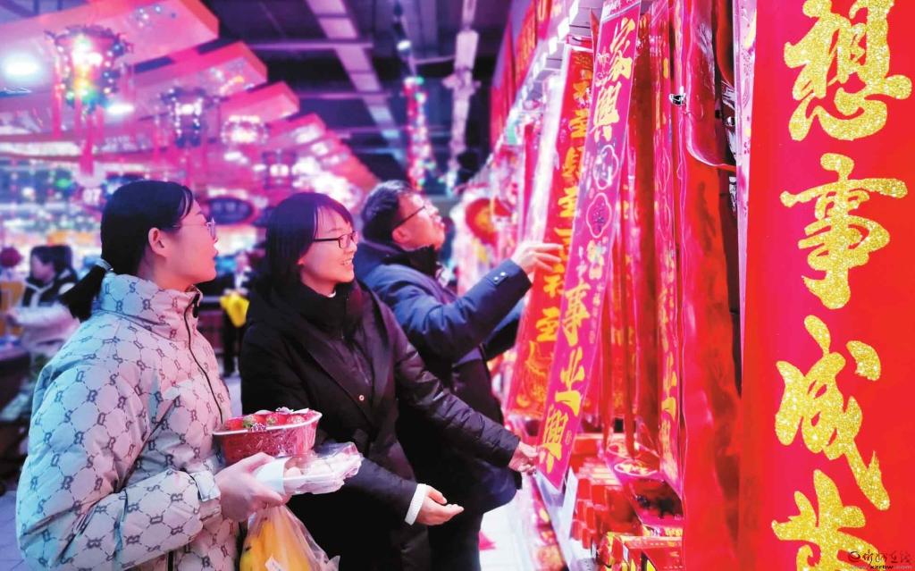2月9日,顧客在忻州城區(qū)家家利超市選購春聯。春節(jié)的腳步越來越近,我市各大超市和集貿市場的各式春聯、生肖貼畫等春節(jié)飾品琳瑯滿目,處處洋溢著祥和喜慶的節(jié)日氛圍。(宮清華攝)