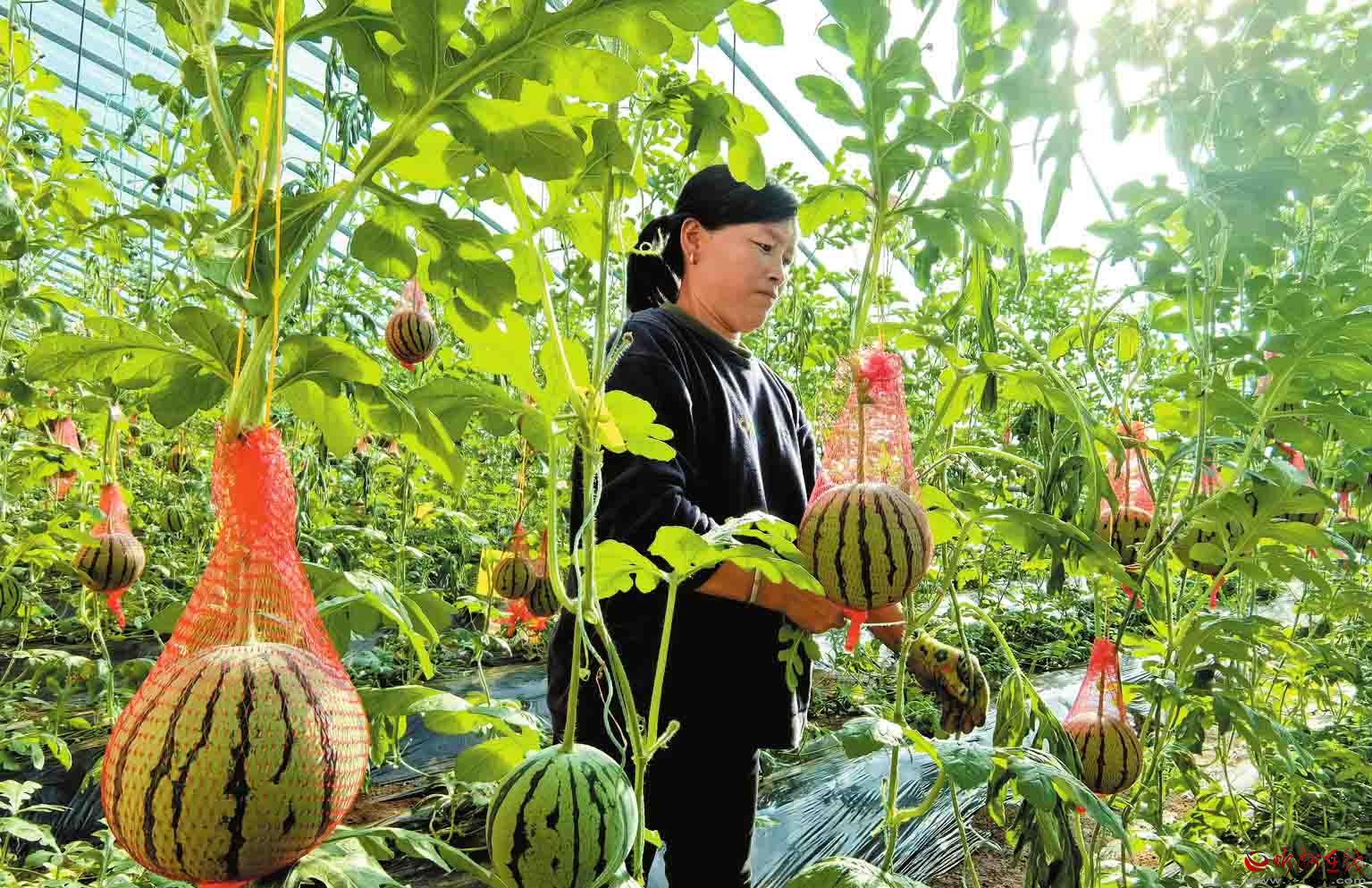 寧武縣充分發(fā)揮地域優(yōu)勢(shì),把設(shè)施蔬菜產(chǎn)業(yè)作為鞏固拓展脫貧攻堅(jiān)成果同鄉(xiāng)村振興有效銜接的有力抓手,積極扶持、鼓勵(lì)農(nóng)民大力發(fā)展周期短、產(chǎn)量高、單價(jià)高的設(shè)施蔬菜產(chǎn)業(yè),帶動(dòng)群眾增收致富。圖為鳳凰鎮(zhèn)周家堡村農(nóng)民在大棚采摘西瓜。(記者劉紀(jì)森攝)
