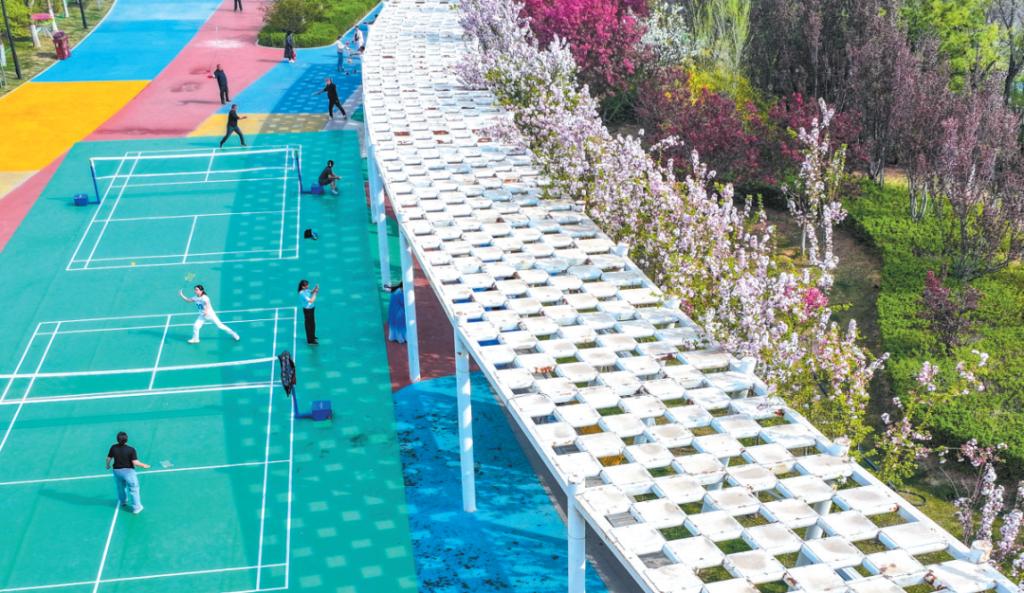 市民在體育公園運動健身,不負好時光。范琛攝