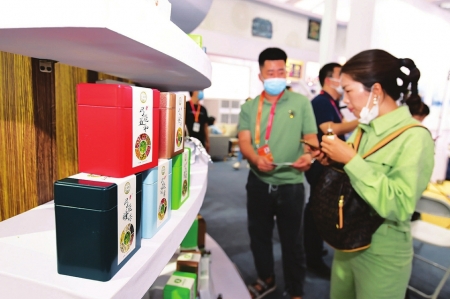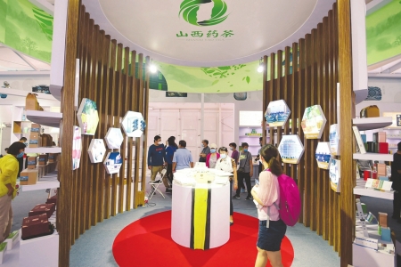 山西藥茶書(shū)籍展臺(tái)造型別致,書(shū)籍內(nèi)容全面,讓參觀者更好地了解山西藥茶。