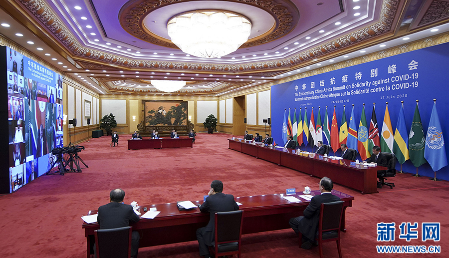 6月17日晚,習(xí)近平在北京主持中非團(tuán)結(jié)抗疫特別峰會并發(fā)表題為《團(tuán)結(jié)抗疫 共克時艱》的主旨講話。 新華社記者 丁海濤 攝