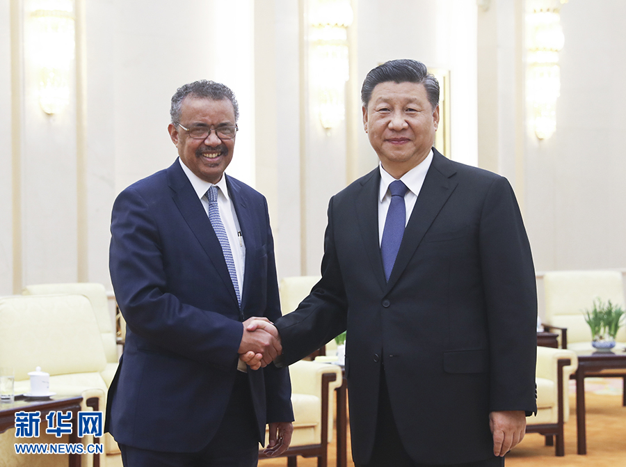 1月28日,習(xí)近平在北京人民大會堂會見世界衛(wèi)生組織總干事譚德塞。 新華社記者 鞠鵬 攝