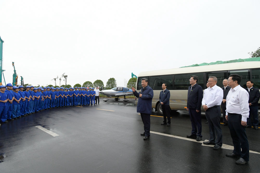 9月17日下午,習(xí)近平在長沙市山河智能裝備股份有限公司生產(chǎn)車間,察看裝備制造流程,了解技術(shù)研發(fā)、生產(chǎn)制造情況。(新華社記者李學(xué)仁 攝)