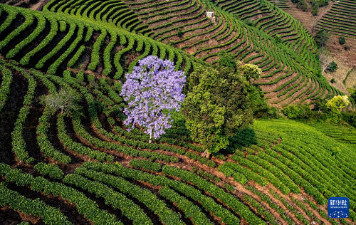 4月15日在普洱市思茅區(qū)倚象鎮(zhèn)拍攝的茶山(無(wú)人機(jī)照片)。(新華社記者 陳欣波 攝)
