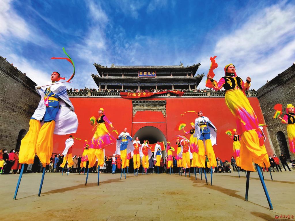 定襄社火和各類傳統(tǒng)民俗活動(dòng)歷史悠久,各類極具地方特色的民俗文化活動(dòng)觀賞性很強(qiáng),二兔藝術(shù)團(tuán)盡情舞動(dòng),表情歡悅;老干部藝術(shù)團(tuán)鶴發(fā)童顏,精神抖擻;夢(mèng)之藍(lán)旗袍隊(duì)舉止高雅,體態(tài)大方;紅燈籠高蹺隊(duì)腳踏雙木,輕松自如……有趣的互動(dòng),讓大家樂在其中。喜慶的樂曲,歡快的表演,充分展現(xiàn)了人民群眾的新生活、新風(fēng)尚、新面貌,迎來觀眾一片喝彩聲,讓游客感受到了定襄的民俗文化魅力。(張存良 攝)