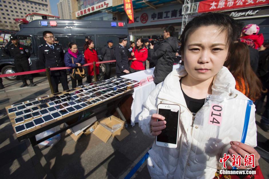3月2日,山西太原警方發(fā)還民眾被盜手機(jī)。近日,太原市公安局偵破一個手機(jī)扒竊犯罪團(tuán)伙,破獲案件200余起,追繳手機(jī)180余部。張?jiān)?攝