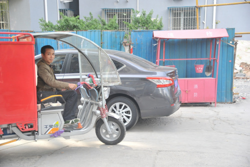 受訪者杜新軍。呂春榮 攝 一年365天,快遞員們天天都奔波在城市的各個角落,“5+2”、“白加黑”已成了他們中大多數(shù)人的工作常態(tài)。 剛加入快遞行業(yè)不久、今年25歲的甘肅小伙杜新軍也早已熟悉當前的工作節(jié)奏,8個月前,杜新軍選擇離開酒店行業(yè),從一名服務員轉型成為北京天天快遞的快遞員。 一般而言,快遞員每天的工作時間都在10小時以上,從來沒有“標準工作時間”的概念。遇上“雙11”等網(wǎng)購高峰期,他們還要通宵工作?!案?、更忙”,這是杜新軍對當前工作的感受。 “以前當服務員還有個周末、節(jié)假日,現(xiàn)在統(tǒng)統(tǒng)沒有了??紤]到能多掙點錢,我倒是能忍受,但女朋友不太樂意,常常抱怨我不能陪她逛街?!倍判萝姳硎?,看著其他情侶周末一起看電影、逛街,自己也心生羨慕,覺得對女友有虧欠,但想想還要努力掙錢,也就想開了。 如今,杜新軍每天配送一百多個快遞,日均收入一百多元,加上基本工資,他一個月工資能達到5千多元。 “雖然我工資不高,但生活比較節(jié)儉,除去一般生活費用,每個月我還能存下一筆錢。”杜新軍笑著說,“至于未來,我就想著再干一階段快遞,然后去女友的老家買套房子,和她結婚生子,到時養(yǎng)她一輩子。” “會受委屈,1個投訴可能讓幾十個快遞白跑”