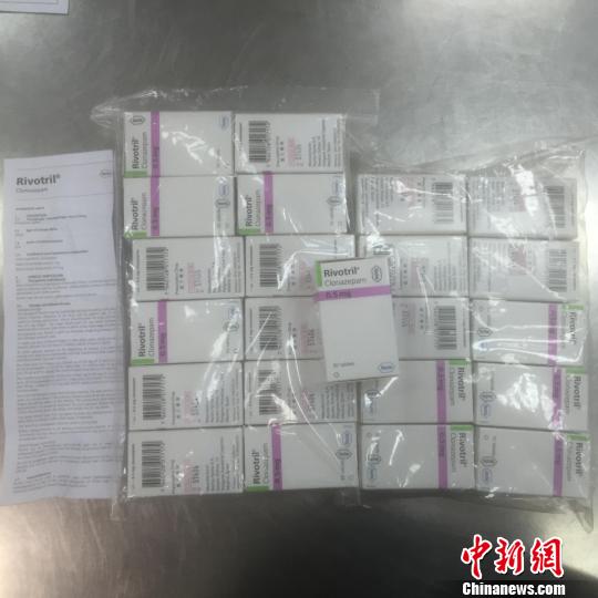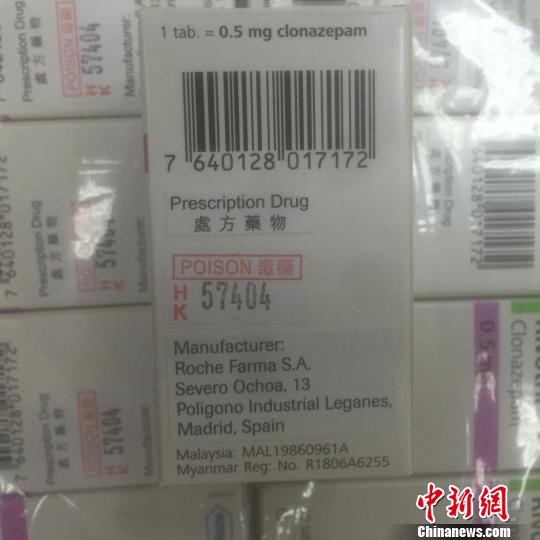 經(jīng)查驗(yàn)發(fā)現(xiàn),背包內(nèi)放置著23盒嶄新的藥物,共計(jì)1.4千克。這些藥物分四排用透明塑料紙纏繞,每個(gè)盒子內(nèi)裝有一個(gè)塑料藥瓶,內(nèi)有50片藥丸。藥盒上及內(nèi)部的說(shuō)明書(shū)均為外文印刷。在最外面包裝上,貼著用中文繁體字印刷的“毒藥”和“處方藥物”字樣。關(guān)員立刻查閱了藥品說(shuō)明,發(fā)現(xiàn)這些藥物居然是被稱(chēng)為“最強(qiáng)安眠藥”的氯硝西泮。