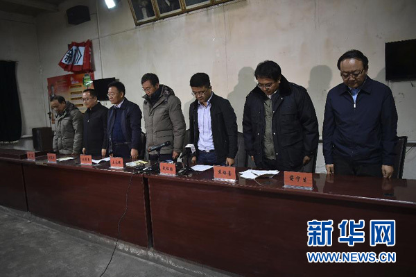 9月28日,參加新聞發(fā)布會的工作人員在向遇難者默哀。 27日早晨,寧夏石嘴山市寧夏林利煤炭有限公司煤礦三號井發(fā)生瓦斯爆炸事故,截至27日22時30分,事故已造成18人遇難,另有2人下落不明。目前救援仍在緊張進(jìn)行中。新華社記者王鵬攝