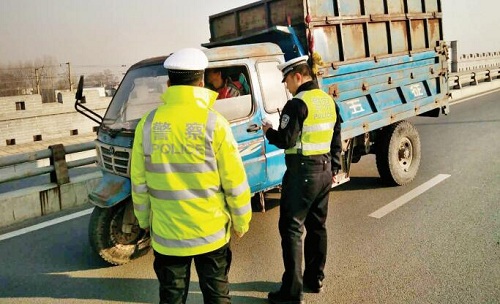 近期以來(lái),忻州城區(qū)大氣污染綜合治理公安交警巡查組繼續(xù)加大對(duì)高污染車輛的巡查打擊力度,全力以赴保障空氣質(zhì)量持續(xù)改善。1月20日,該支隊(duì)環(huán)安巡查組出動(dòng)警力30人、警車6輛,查處高污染闖禁行車輛12,勸返高污染車輛4輛,扣留證件2套,查扣車3輛。圖為公安交警巡查隊(duì)員正在檢查過(guò)往車輛。魯明強(qiáng) 項(xiàng)建軍 攝影報(bào)道