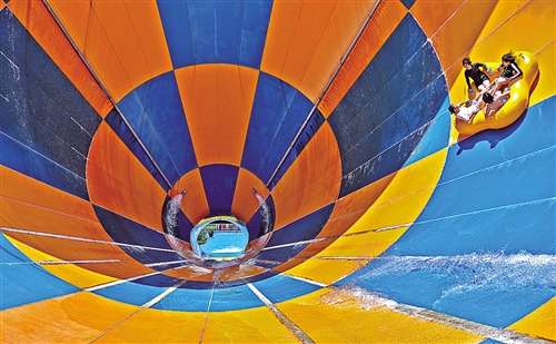 日前,游客在山東煙臺37度夢幻海水樂園體驗“深海龍卷風”游樂項目。孫文潭攝(中經(jīng)視覺)