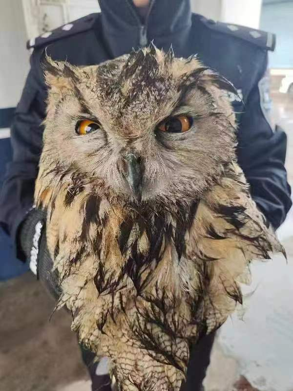 貓頭鷹不慎“落難” 河曲警方溫情救助