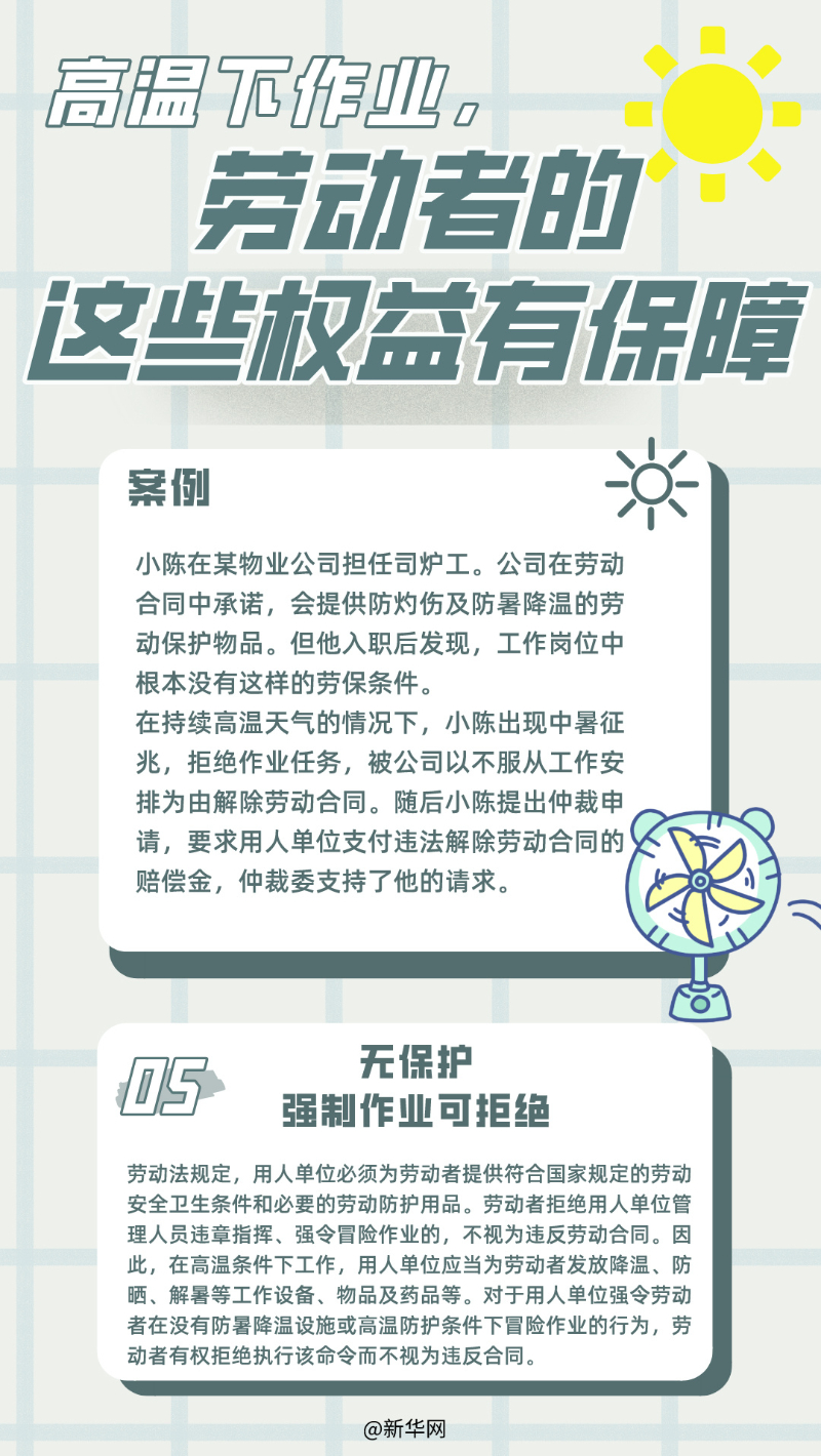 各地高溫來襲,許多戶外工作者依舊頂著烈日堅守在工作崗位上。向他們致敬的同時,也應(yīng)關(guān)注高溫作業(yè)勞動者應(yīng)當享有哪些勞動權(quán)益?本期以案“視”法用以下6個案例為大家解析。