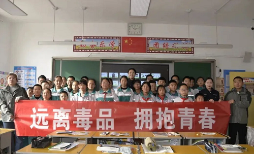 活動尾聲,在民警的帶領(lǐng)下,全體同學(xué)高舉右拳,莊嚴(yán)宣誓,“珍愛生命,遠離毒品,防毒拒毒,從我做起”鏗鏘有力的誓言回蕩在校園,既展現(xiàn)了同學(xué)們抵制毒品的堅定決心,也讓“晉善警美”的法治理念深深扎根于青少年心中。