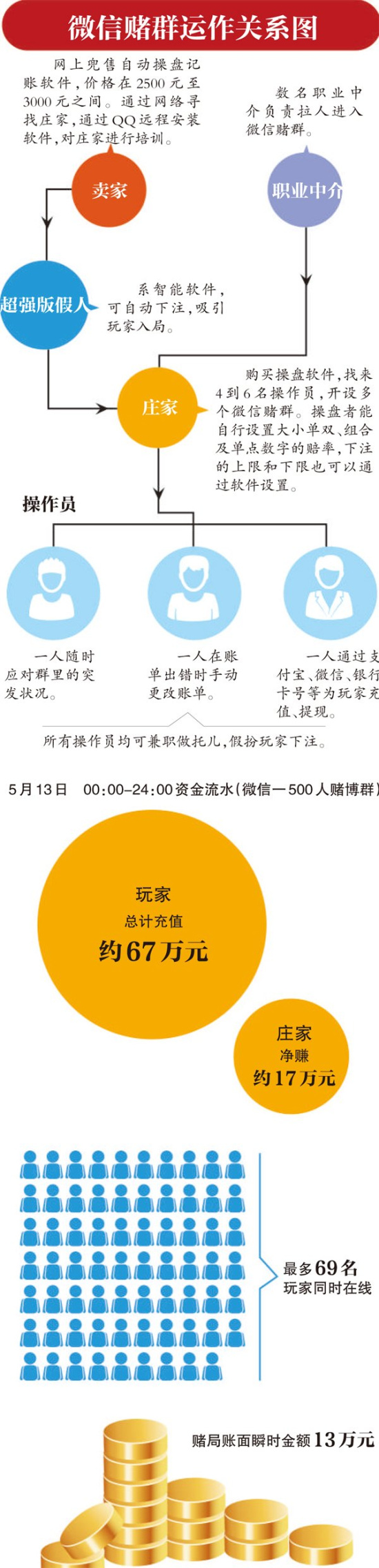6月12日,某報(bào)記者臥底微信賭場(chǎng)的報(bào)道給人們揭開(kāi)了“微信賭場(chǎng)”的可怕內(nèi)幕:開(kāi)一局只需5分鐘,下注、開(kāi)局、下注……賭局像車輪滾動(dòng),你甚至來(lái)不及眨幾下眼,也不知道錢輸給了誰(shuí),成千上萬(wàn)賭資就已蒸發(fā)。一位賭徒這樣描述,“血淋淋的,押下去是一串沒(méi)有感覺(jué)的數(shù)字,玩完才發(fā)現(xiàn)輸了一大筆,這比現(xiàn)實(shí)中的賭場(chǎng)恐怖太多。”