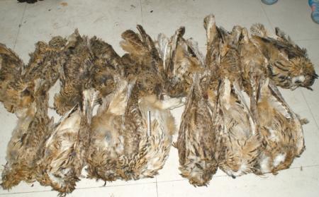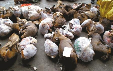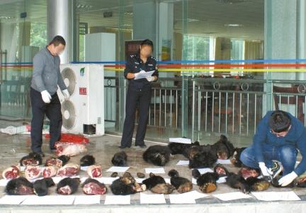 7個熊頭,其中3個已經(jīng)燙掉毛皮;大小熊掌共計11只;3個鱷魚掌;一堆鷹類尸體……地上的珍稀動物死體幾乎壘成一座小山,而這只是本案中起獲的動物死體的一部分。