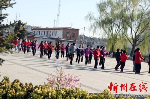 4月8日。原平市市民們正在環(huán)境優(yōu)美的范亭廣場上,彈拉琴唱,強身健體歌聲飄揚樂悠悠,享受著春天氣息和如今好生活。(趙春曉 攝)