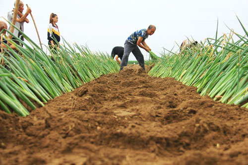| 原平:收割小麥栽大蔥 |