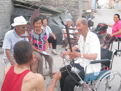 7月31日,河曲縣北元村一處街頭巷口傳出陣陣音樂和“山曲兒”聲。愛好文藝的氣象局退休人員段王鎖和村民經(jīng)常相聚街頭巷口,吹的吹,拉的拉,唱的唱,每每吸引鄉(xiāng)親們前來共享“農(nóng)家樂”。既起到了陶情怡性的作用,也給鄉(xiāng)親們帶來具有鄉(xiāng)土風(fēng)味的精神食糧。(賈金理 攝) (責(zé)任編輯:李冬梅) |