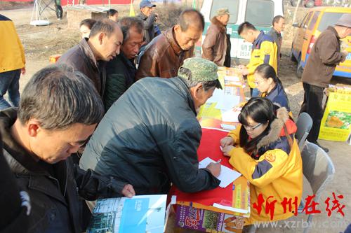 11月29日,原平市聚農(nóng)豐肥料合作社在農(nóng)貿(mào)市場擺攤推銷肥料。入冬以來,該合作社充分利用鄉(xiāng)下農(nóng)貿(mào)市場趕集的機(jī)會(huì),帶著各種肥料的宣傳資料,現(xiàn)場與農(nóng)民對(duì)接簽訂免費(fèi)送肥合同,受到農(nóng)民歡迎。(曹申義 攝)