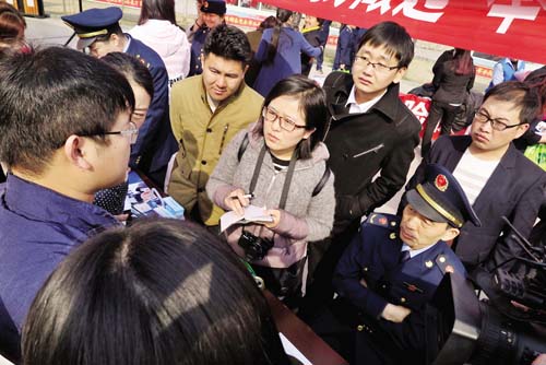 3月15日,忻州城區(qū)體育廣場(chǎng)上以“網(wǎng)絡(luò)誠(chéng)信消費(fèi)無憂”為主題的3·15國(guó)際消費(fèi)者權(quán)益日宣傳活動(dòng)火熱進(jìn)行?;顒?dòng)現(xiàn)場(chǎng),各部門和企業(yè)通過發(fā)放宣傳資料、設(shè)立咨詢臺(tái)、現(xiàn)場(chǎng)受理群眾投訴舉報(bào)、提供服務(wù)等方式,宣傳《消費(fèi)者權(quán)益保護(hù)法》、《反不正當(dāng)競(jìng)爭(zhēng)法》、《無照經(jīng)營(yíng)查處辦法》等法律法規(guī)以及食品藥品安全、識(shí)假辨假等各類知識(shí),吸引了眾多群眾積極參與。受理投訴臺(tái)前,陸續(xù)有消費(fèi)者前來投訴,且有不少年輕人,所反映的問題既有涉及家具、汽車等金額較大的線下消費(fèi)活動(dòng),也有通過電商平臺(tái)進(jìn)行的線上交易。市工商局、消費(fèi)者協(xié)會(huì)的工作人員將消費(fèi)者投訴的問題一一記錄在冊(cè),并表示會(huì)盡快調(diào)查處理。本版圖片攝影 魯明強(qiáng) 王 菲