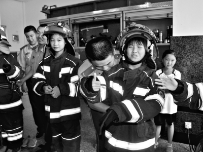 “叔叔,這是干什么用的?” 樂樂拿起一個面罩轉了幾圈?!斑@個叫防毒面具,可以防止毒氣、煙霧進入鼻子和嘴巴?!币幻绬T戰(zhàn)士告訴樂樂,在發(fā)生火災時,為了防止毒氣、煙霧吸入口中,小朋友們可以用濕毛巾代替,把濕毛巾對折捂住嘴巴和鼻子?!懊泶驖窈笞詈蒙晕Q一下,讓毛巾不滴水,這樣防毒的效果最好?!?/p>