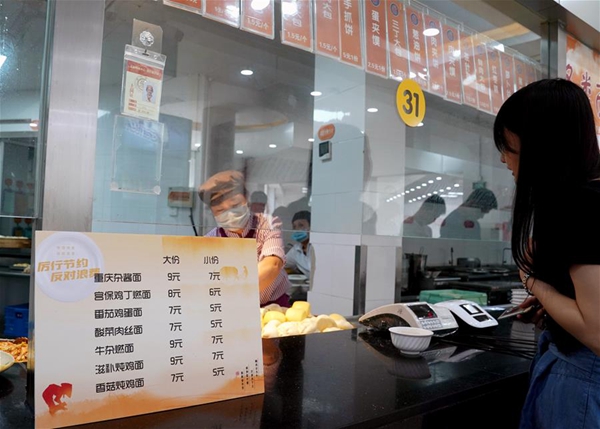 上海交通大學(xué)的食堂的各類面條實(shí)行大份、小份供餐。9月1日起,上海交通大學(xué)的學(xué)生開(kāi)始分批、錯(cuò)時(shí)到校開(kāi)學(xué)。開(kāi)學(xué)后,學(xué)校食堂加強(qiáng)節(jié)約糧食、光盤行動(dòng)的宣傳,并采取多項(xiàng)措施引導(dǎo)師生員工文明用餐,杜絕浪費(fèi)。