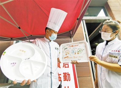 9月15日,北京交通大學(xué)餐廳推出“我的餐盤我做主——優(yōu)化膳食結(jié)構(gòu) 夯實(shí)免疫基石”主題活動(dòng)?;顒?dòng)倡導(dǎo)飲食多樣化,減少食物浪費(fèi)。餐盤上標(biāo)注的谷薯、蔬菜、水果、魚(yú)肉等膳食種類,將科普和節(jié)約融為一體。