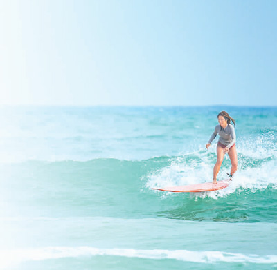 從第一次成功抓浪開(kāi)始,張菘蓓很快便愛(ài)上了這項(xiàng)與大海親密接觸的運(yùn)動(dòng)。清晨或者傍晚時(shí)分,她都喜歡站在海邊,欣賞日出日落,感受海水拂過(guò)身體、人與自然融為一體的寧?kù)o。