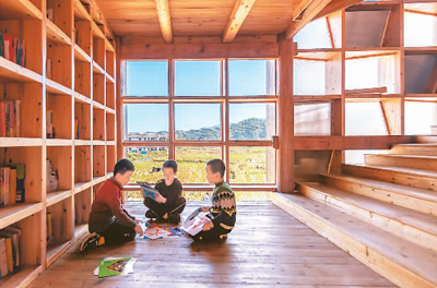 據(jù)介紹,坪坦書屋位于湖南省懷化市通道侗族自治縣坪坦鄉(xiāng)侗族村一所有400多名學童的小學庭院內(nèi),于2021年底啟用。這棟建筑物樓高3層,面積約180平方米,完全以木材建造。書屋繼承了傳統(tǒng)侗族建筑的特色,由兩個交錯的螺旋樓梯組成,采用瓦片坡屋頂和榫卯相扣的柱梁木結(jié)構(gòu)系統(tǒng),既可讓孩子們閱讀,也可讓他們玩耍和探索。(陳然)