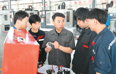 轉(zhuǎn)機(jī)出現(xiàn)在2017年。當(dāng)年,萊職邀請他到機(jī)電一體化方向從教,一入校就可定為中級職稱,一年后還有機(jī)會(huì)升副高。“學(xué)校有激勵(lì)機(jī)制,能晉升、能評獎(jiǎng)、有福利,我的職業(yè)天花板更高了,個(gè)人成長更好了!”付貴臣說。如今,萊職“雙師型”教師已有405名,按照山東省辦學(xué)質(zhì)量監(jiān)測指標(biāo)計(jì)算方法,學(xué)校“雙師型”教師比例達(dá)到98.97%。