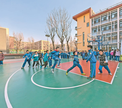 今年2月,北京市教委與北京市體育局聯(lián)合印發(fā)《關(guān)于進(jìn)一步加強(qiáng)新時代中小學(xué)體育工作的若干措施》,其中明確規(guī)定:中小學(xué)校每學(xué)期都要開展至少一場班級聯(lián)賽。“體育比賽要從少數(shù)人參與向全員參與拓展,確保時長和質(zhì)量?!北本┦薪涛敝魅?、新聞發(fā)言人王攀表示,北京市教委新學(xué)期已經(jīng)制定了班級賽管理辦法,并撥付了支持經(jīng)費(fèi),期待各校充分挖掘潛力、精心設(shè)計活動,實(shí)現(xiàn)“班班有比賽、人人都參與”。