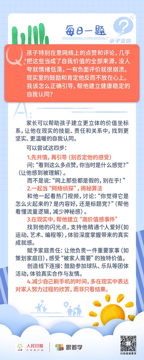 每日一題丨孩子過(guò)度依賴網(wǎng)絡(luò)點(diǎn)贊、評(píng)論來(lái)獲得自我認(rèn)同,家長(zhǎng)該如何正確引導(dǎo)?