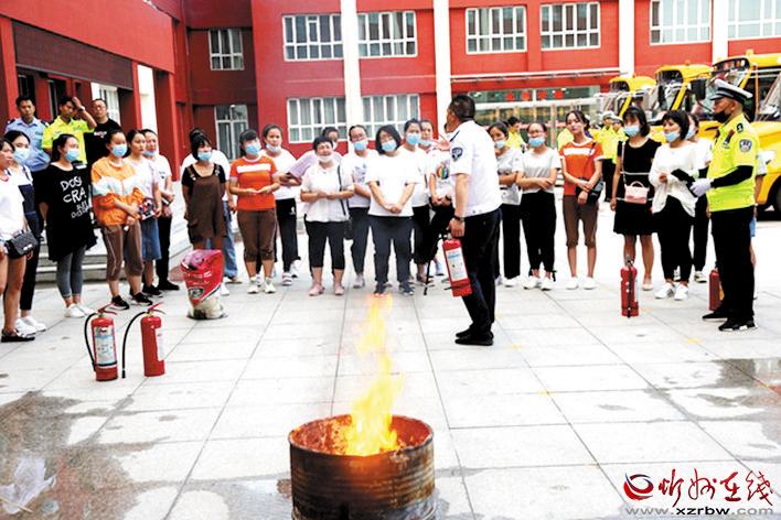 本報(bào)訊 為扎實(shí)做好校車(chē)消防安全工作,進(jìn)一步提高識(shí)險(xiǎn)、避險(xiǎn)意識(shí),杜絕重大安全事故的發(fā)生,7月31日,河曲縣教育系統(tǒng)在長(zhǎng)城小學(xué)組織開(kāi)展全縣校車(chē)消防安全培訓(xùn)暨校車(chē)應(yīng)急演練活動(dòng)??h教科局、公安局、交警隊(duì)、應(yīng)急局相關(guān)負(fù)責(zé)人,有校車(chē)的幼兒園負(fù)責(zé)人及司機(jī)、跟車(chē)人員、班主任參加了活動(dòng)。
