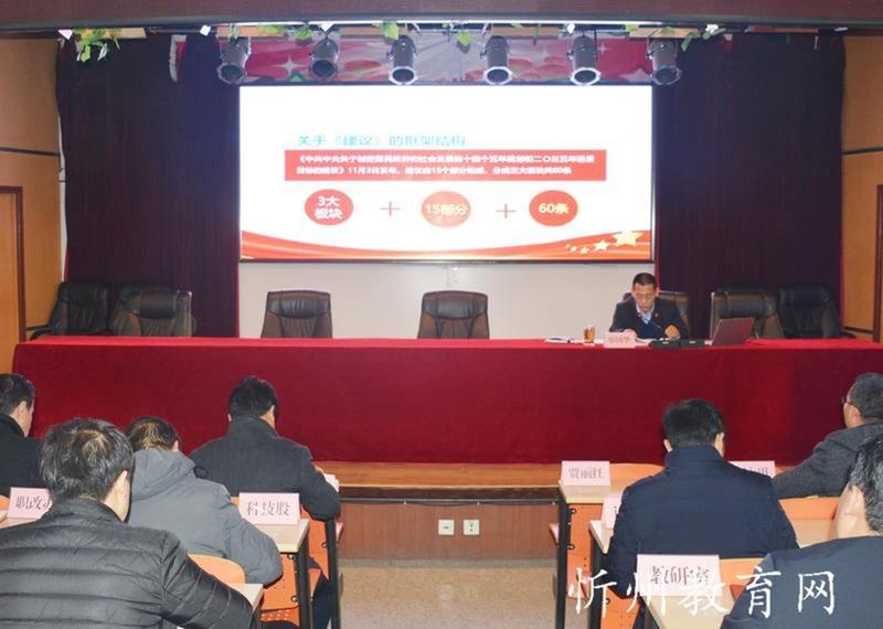11月28日,原平市教科系統(tǒng)召開黨的十九屆五中全會精神宣講報告會,市委宣講團成員、市教科局黨組書記、局長申國華作宣講報告。市教科局主任科員、機關(guān)支部書記賈毅主持報告會。教科系統(tǒng)各學校校長、書記,局機關(guān)各科室負責人參加報告會。