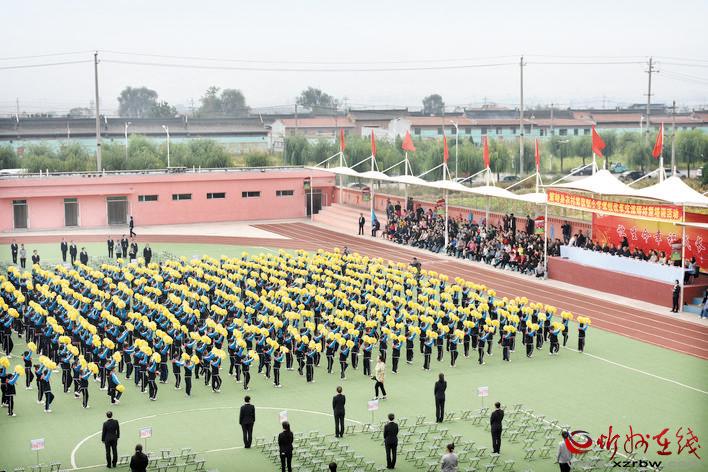 9月27日上午10點整,寬闊的綠茵操場上,彩旗飄揚,鼓樂喧天。由700多名小學生組成的整齊的方陣,在環(huán)形跑道上健步前行。鮮花舞動,口號震天??磁_上人頭攢動,掌聲如潮……這是繁峙縣教育科技局在筆峰小學組織召開的全縣農村寄宿制小學課程改革交流研討暨培訓活動七大程序中的第三項內容——文體藝術成果大型展示的入場式。