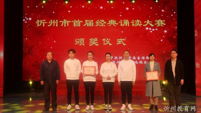 “共讀中華經(jīng)典,聆聽古詩書韻”。由中共忻州市委宣傳部主辦,忻州市廣播電視臺承辦 “忻州市首屆經(jīng)典誦讀大賽”經(jīng)過初賽海選和緊張激烈的復賽和決賽,于11月1日落下帷幕。本次比賽學生組共有四十一個參賽節(jié)目,經(jīng)過角逐,有十個節(jié)目進入了決賽。決賽采取評委當場亮分,現(xiàn)場點評的方式,最終評出一等獎一名,二等獎二名,三等獎三名,最佳風采獎四名。七一路小學以98.51分的成績奪冠,榮獲學生組一等獎。同時學校也榮獲優(yōu)秀組織獎。