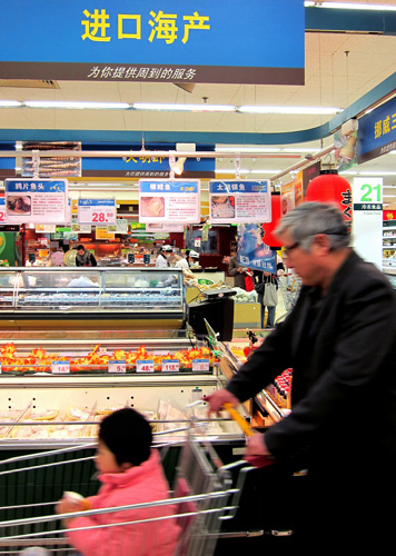 資料圖:消費(fèi)者在一家大型超市選購(gòu)進(jìn)口食品。新華社記者 陳飛 攝