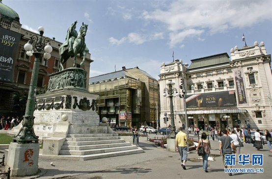 塞爾維亞米哈伊洛王子紀念碑和國家劇院(新華網(wǎng)發(fā))