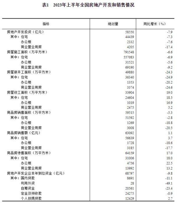 國家統(tǒng)計局:上半年全國房地產(chǎn)開發(fā)投資58550億元 同比下降7.9%