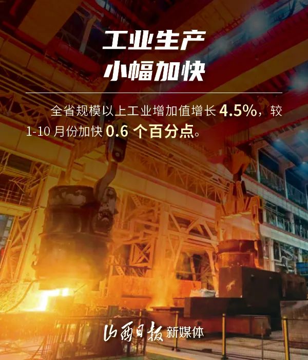 12月20日,省統(tǒng)計(jì)局發(fā)布1至11月份山西經(jīng)濟(jì)運(yùn)行情況。1至11月份,山西扎實(shí)推動高質(zhì)量發(fā)展,穩(wěn)增長政策效應(yīng)持續(xù)釋放,主要指標(biāo)增勢良好,工業(yè)生產(chǎn)小幅加快,消費(fèi)市場穩(wěn)步復(fù)蘇,就業(yè)物價(jià)總體平穩(wěn),經(jīng)濟(jì)運(yùn)行穩(wěn)中向好。一組海報(bào)了解1至11月山西經(jīng)濟(jì)成績單。